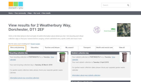 MyLocal allows you to find out when your bins are collected, what school catchment area you are in, who your councillors are and much more, just be entering your postcode and picking your address.